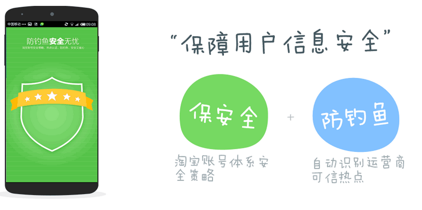 淘WiFi热点认证、防钓鱼功能,及淘宝账号自有安全策略,轻松保护您的账号信息安全和淘宝交易安全。