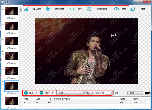 第6步:点选“编辑”按钮,选择在不同的帧添加字幕,设定字幕出现的帧,以及结束的帧,字体和顏色都可以调整。