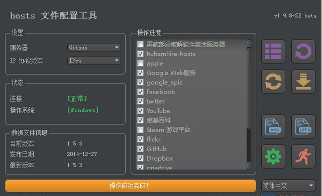 当无法访问的时候,外边也没有放出新的hosts,尝试使用hosts文件配置工具huhamhire-hosts。