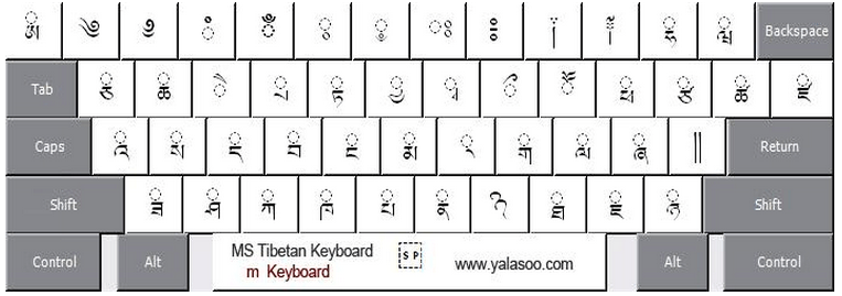在键盘的布局上以藏文为主,梵文为辅。藏文字符也是梵文的主体字符,在日常生活中梵文的应用是少量的,因此,藏文键位分配在键盘的最佳位置上,梵文键位放在次要的键位上。