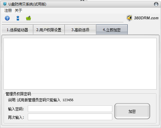 管理员拥有所有权限,可以复制文件,删除文件等,并且能 解密U盘 及 重新修改用户权限.