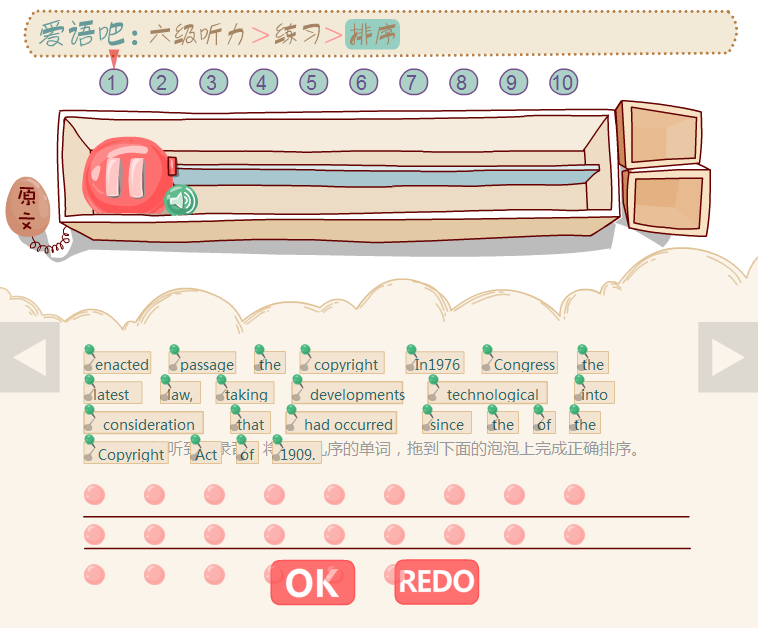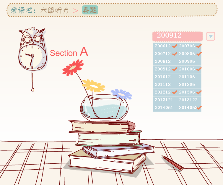 爱语吧英语六级听力,专为六级备考而准备,提供历年英语六级考试真题,为你提供详细的分析讲解;同时设定了多种练习方式,让你可以熟练掌握六级考试的答题方法,全力推进六级听力突破。