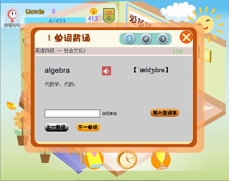 背单词游戏,生动有趣,游戏内容就是你刚背过的单词,让你在不知不觉中轻松记住单词。