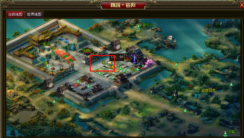 【盛世三国2】进入游戏后,到达玩家各自的国家主城,蜀:成都、吴:建业、魏:洛阳寻找礼官npc。坐标:138,121,输入激活码兑换即可