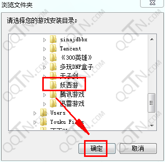 请选择游戏安装目录,如“X:\Program Files\妖西游”