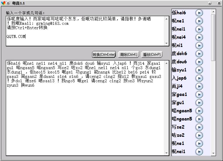 一个能查询任何汉字的粤语读音,绿色软件,无需安装解压即用,是广大学习粤音(广东话)人仕的好工具!