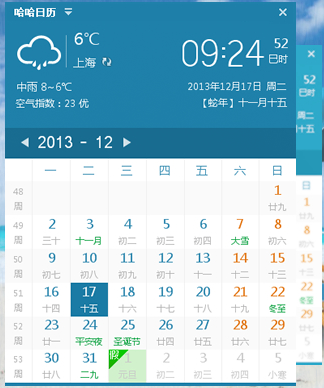 当前位置:星空外围足球网(系统工具桌面工具 → 哈哈日历2015 1.0 绿色版