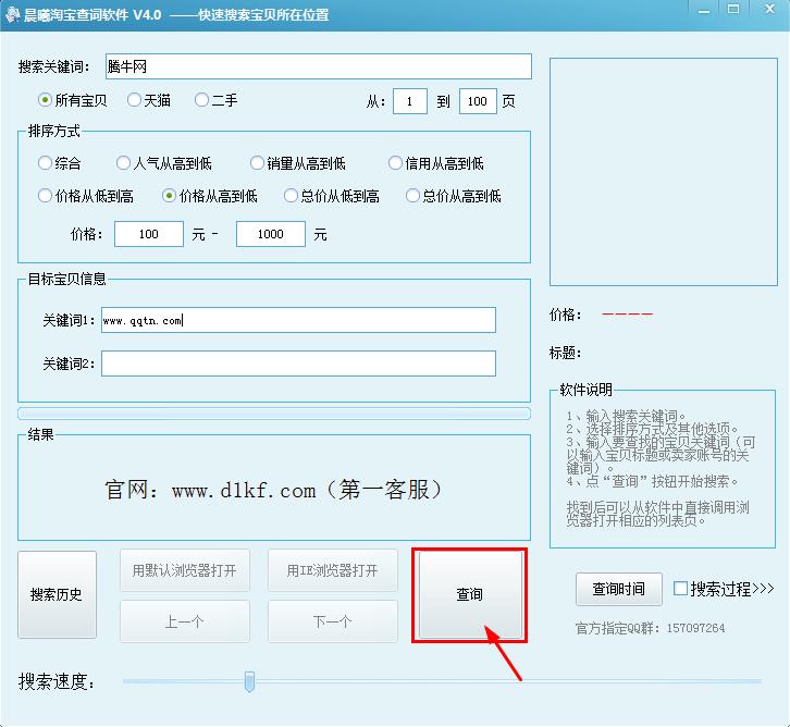 4、点“查询”按钮开始搜索。找到后可以从软件中直接调用浏览器打开相应的列表页。