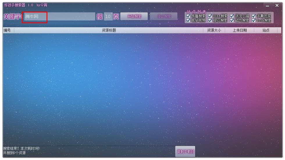 好孩子搜索器是一款由今宵工作室开发制作的2015最新免费的种子搜索器,在这里你可以搜索到任何资源,只要是你想要的,只需要输入关键字进行搜索,它都能以最快的速度为你搜索到所有相关的资源,然后你就可以选择自己想要的资源,复制磁力链到迅雷等下载工具进行快速下载。好东西你懂的。