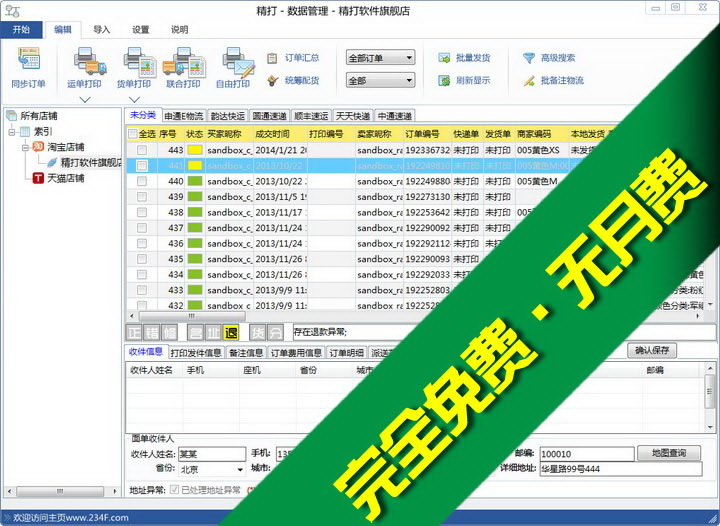 精打快递单打印软件是一款专门的快递单打印软件,这款软件可以帮助你管理淘宝、天猫订单并进行快递单打印,强大的订单管理系统实现多店铺数据整合管理,并完全免费提供给卖家使用的快递单打印工具。功能上贴合卖家需求,在产品设计上,完全符合大中小型卖家的实际使用场景。