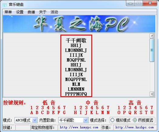 3、内置多首歌曲按键谱,只要根据按键谱敲打键盘即可弹奏出多首乐曲