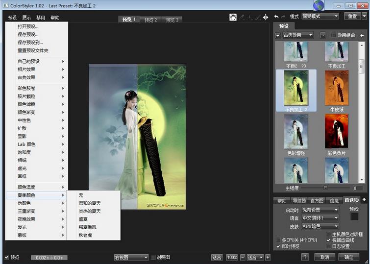 5、支持ACV(Photoshop的曲线)文件,并以缩略图的形式显示其效果
