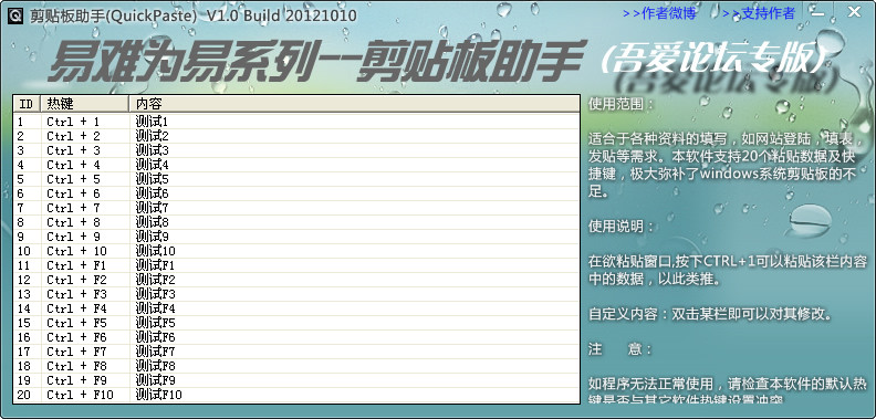 如程序无法正常使用,请检查本软件的默认热键是否和其它软件的热键设置冲突。