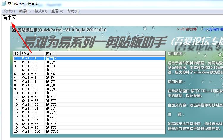 3、在欲粘贴窗口,按下CTRL+1可以粘贴第一栏中的内容,依此类推。