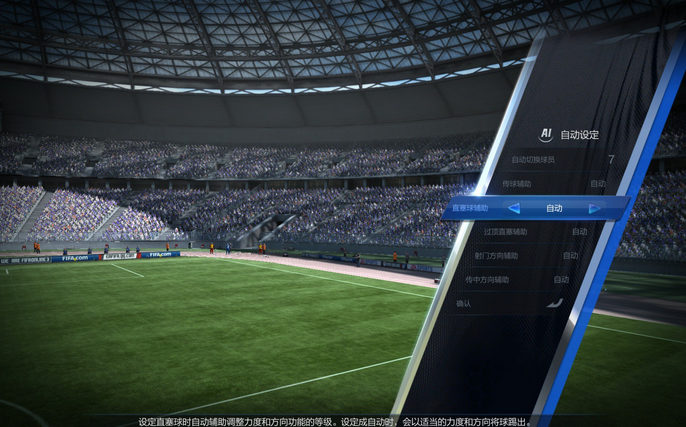 传中方向辅助:设定传中方向的自动辅助功能的等级。设定成自动时,会尽可能踢到球门附近。