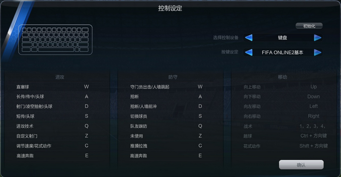 该操作按键设定为FIFA Online 3的默认操作设定。