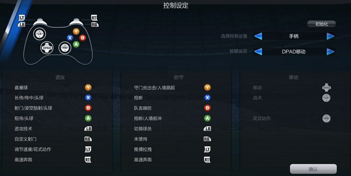 (1)手柄设定——普通(单机FIFA中的“经典”设置)