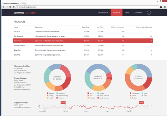美丽而又身临其境的数据可视化:DevExtreme为智能手机和平板电脑封装了易于使用的HTML JavaScript应用程序,包含超过30种触摸优化的本地UI小工具,可用于任何应用程序的单个页面。