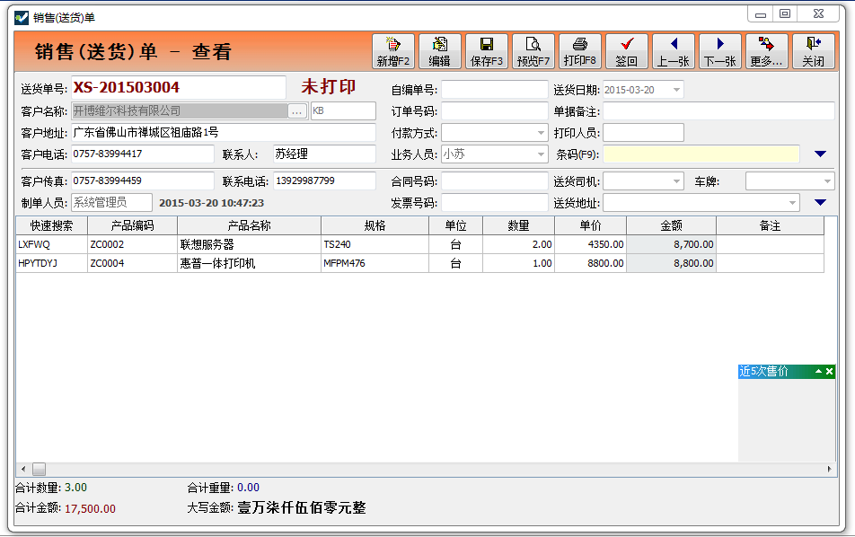开博送货单打印软件具有数据自动记忆功能:您开过的送货单不在需要重复录入,您开过单的的客户信息自动保留到客户资料库中,您给任何一个客户的产品售价自动记录并在当次开单时自动提示......等等,能够做到了您所想不到的细致功能。送货单号由系统自动生成(可按年+月+日+流水号等多种格式生成送货单号),充分利用强大的数据库功能给工作带来的便利,真正的方便实用。系统内置强大的权限管理功能,真真正正的让您从此告别手工抄写送货单和使用EXCEL做月结的烦恼,打印出整齐漂亮的送货单,同时还能即时管理商品库存存货和客户欠款。