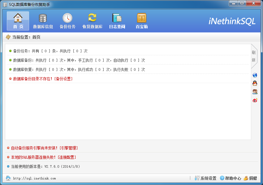 SQL数据库备份恢复助手是一款完全免费的SQL数据库备份软件,支持本地局域网和远程数据库备份操作。全面支持windows xp以上所有32/64位操作系统;软件为绿色版,无需安装,操作十分便捷。同时可以进入自动备份模式,备份任务分析与数据库备份脱离,互不干涉。