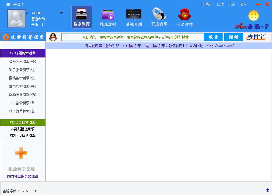 雅儿云播采用最新云加速技术,强大的在线搜索功能,提供多达八个搜索引擎,你想要的这里都可搜到,同时集成三个播放引擎,可保障用户稳定使用!