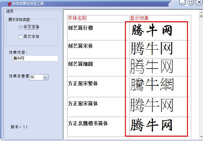 字体效果全浏览工具 v1.1更新内容: