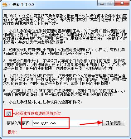 5、为了防止小白助手被不良用户违规使用并控制小白助手的使用范围,小白助手将发放邀请码,用户只能通过邀请码才能使用小白助手软件;