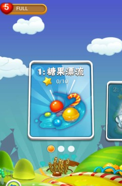 游戏玩法延续了其他消除游戏,三个以上相同颜色的糖果就可以消除!而玩家你完成关卡分数就可以闯关成功,界面分数要求在界面的上方显示!