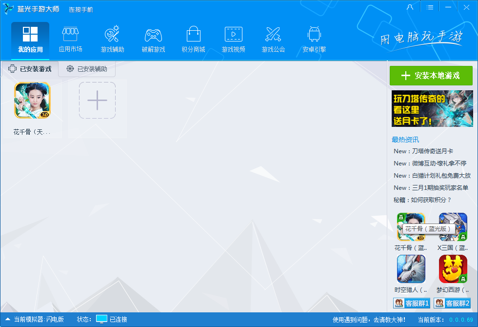 4、软件会打开蓝光手游大师,并且自动下载《花千骨手游电脑版》游戏。