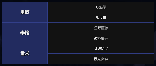 火焰支配者里欧,怒吼的万兽之王泰格,笼罩战场的蓝色极光雷米。