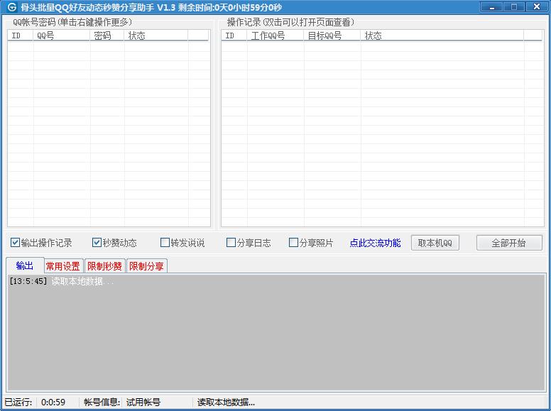 独家支持几十个上百QQ同时在线秒赞与分享转发,耗费资源小