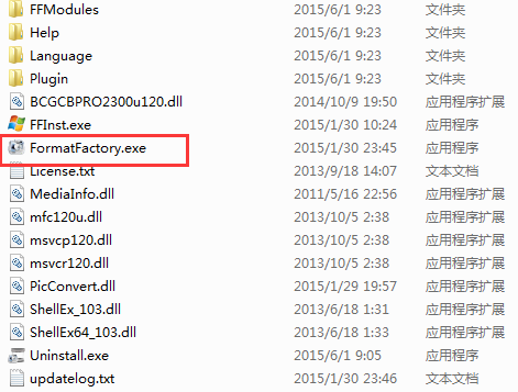 2、在文件夹找到FormatFactory.exe文件,双击运行即可。