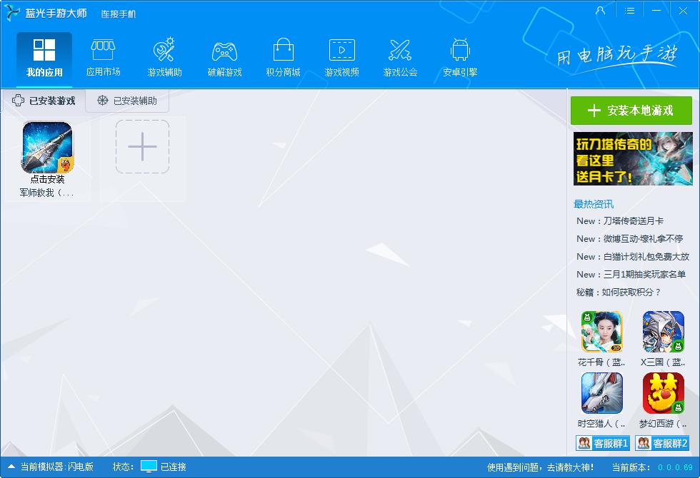 4、软件会打开蓝光手游大师,并且自动下载《军师救我电脑版》游戏。
