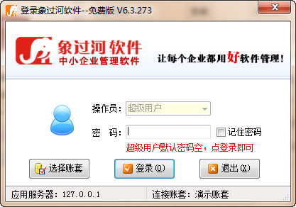 另一方面,象过河进销存软件终身免费版在使用时间和单据数量上都没有限制。在同类软件中也是佼佼者,并且象过河软件还提供持续改进、完善和升级服务。那么象过河软件终身免费版如何使用呢?象过河进销存软件不需要注册(登陆账号:超级用户,登录密码为空,直接登录即可使用),开启象过河软件服务器,然后打开象过河软件客户端,直接登录即可。然后即可正常使用了。