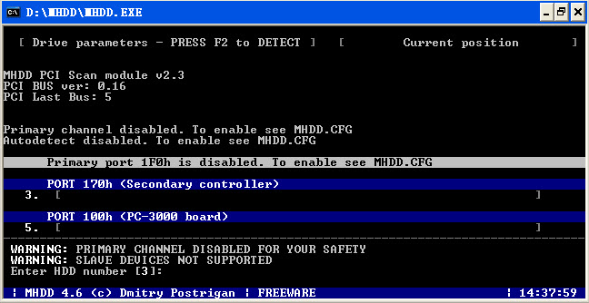 MHDD可以不依赖于主板BIOS直接访问IDE口,可以访问128G的超大容量硬盘(可访问的扇区范围从512到137438953472),