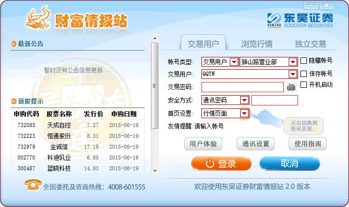东吴证券财富情报站是一款集“行情、资讯、委托、在线咨询”等多种功能为一体的综合服务客户端软件。