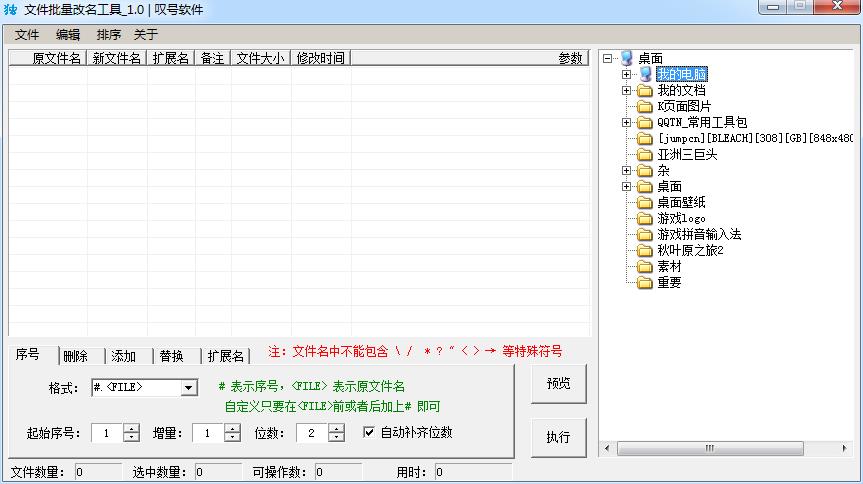 叹号软件文件批量改名工具是一款绿色小巧的文件批量重命名软件。这款文件批量改名软件操作简单,用户只需要导入相应的文件夹,即可进行添加、删除、替换、扩展名等修改,让你更统一规范的管理文件夹!