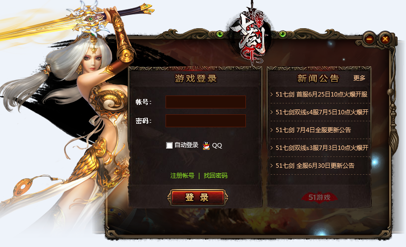 51七剑官网提供了微端登陆器,下载即可享受桌面游戏,支持51帐号或QQ快捷登陆,并提供官方新闻公告等信息。