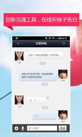 “恋爱神器”是新一代的婚恋交友软件,依托1亿1亿9836万用户的专业平台,创新式的交友方式:简单、快捷、靠谱;随时随地听妹子在线告白。