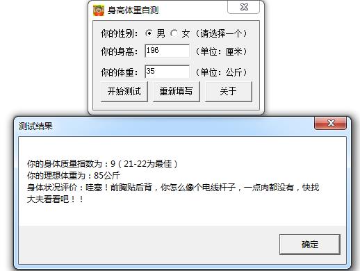 根据用户输入比例,判定用户是否偏胖或偏瘦