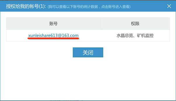 登录授权账号,点击账号下拉框中的【授权给我的账号】,弹出“授权给我的账号”的窗体列表,点击账号名就可以在新的标签页中产看授权账号的产出信息了。