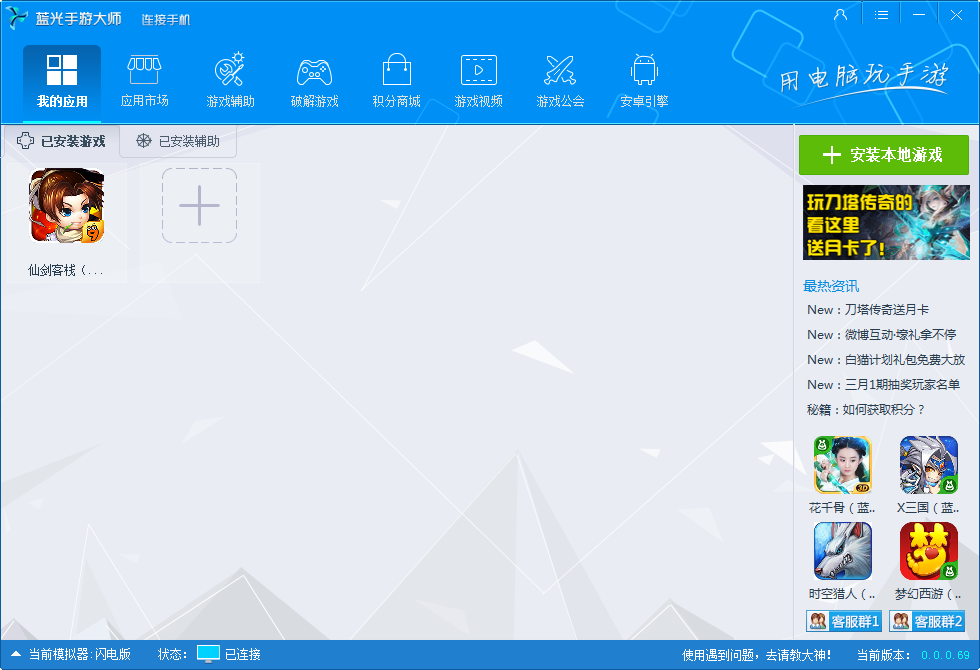 4、软件会打开蓝光手游大师,并且自动下载《仙剑客栈手游电脑版》游戏。