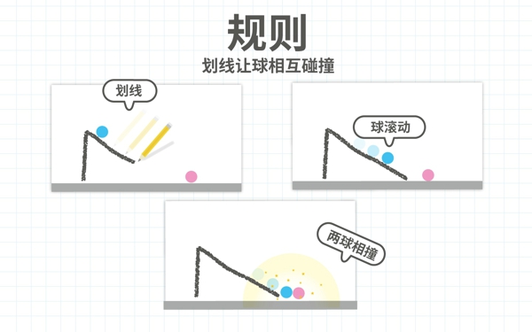 要想过关,只需要使蓝球和红球相撞。自由划线可以让球滚动,你的想象力是过关的关键。