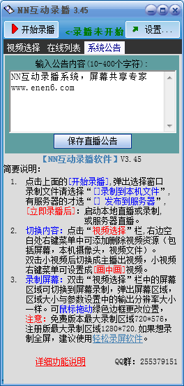1.NN互动录播,是一款简洁实用的多媒体视频录播平台。可用于视频或屏幕直播,在线教学,多媒体课件录制,会议直播互动,视频语音文字聊天。