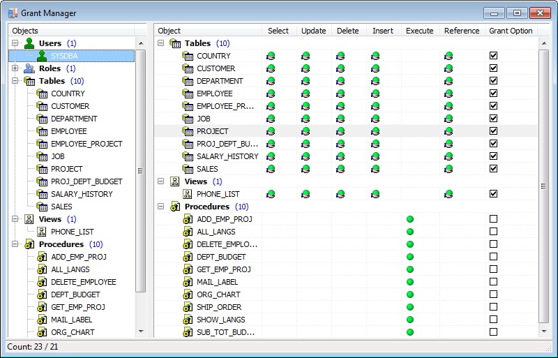 允许授予或撤销所有数据库对象的权限。