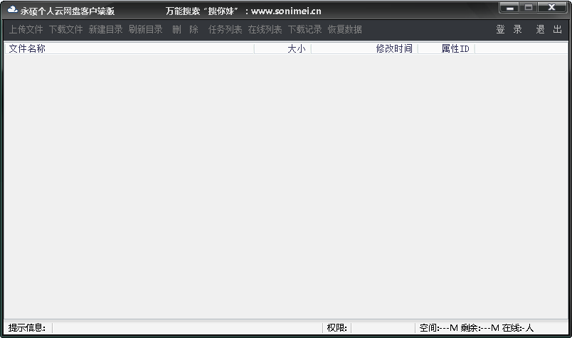 永硕个人云网盘客户端适合永硕E盘用户在桌面管理网盘,其提供上传/下载文件、新建/刷新目录、删除、任务/在线列表、下载记录、恢复数据等功能。