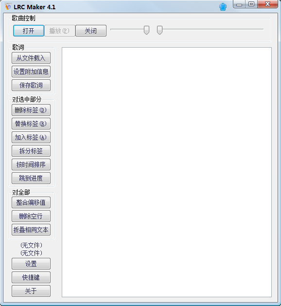 LRC Maker是一个界面简介、明了的软件,并且对电脑配置要求不高,绝大多数电脑都可以完美运行,编辑时候可以边听歌编辑歌词的好软件。
