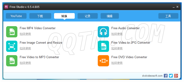 Free Studio媒体工具大集合 是软件厂商 DVDVideoSoft 出品的全部软件的一个集合。里边有多种类别的使用软件。最为重要的是,他是免费的。你现在就可以拥有它。