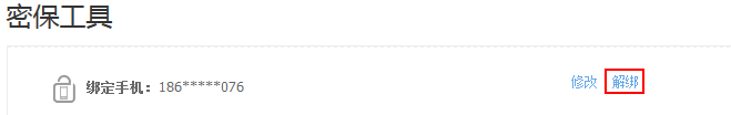 2、在下方“密保工具”中,绑定手机一项的右侧,您可以看见一个“解绑”的入口,点击解绑