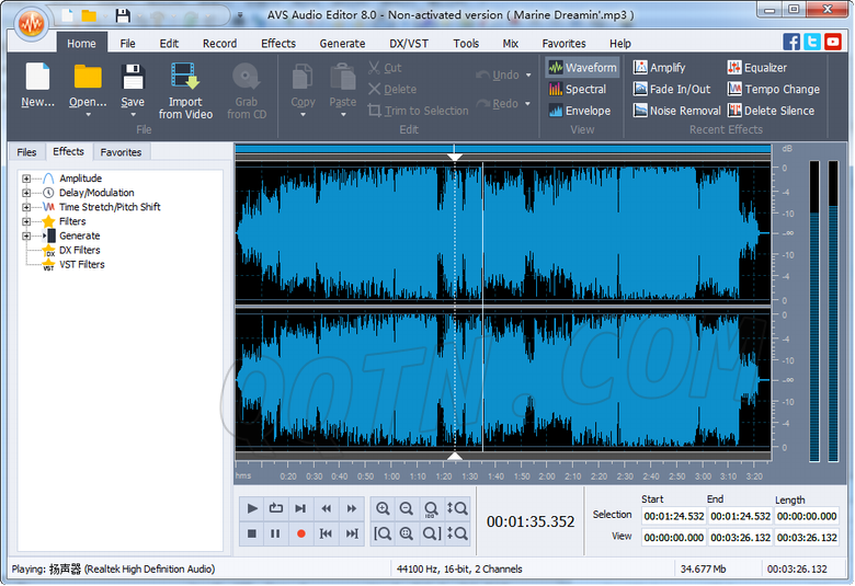 AVS Audio Editor 还可以允许你直接通过频率分析界面对录制的音乐直接进行分析和编辑操作!